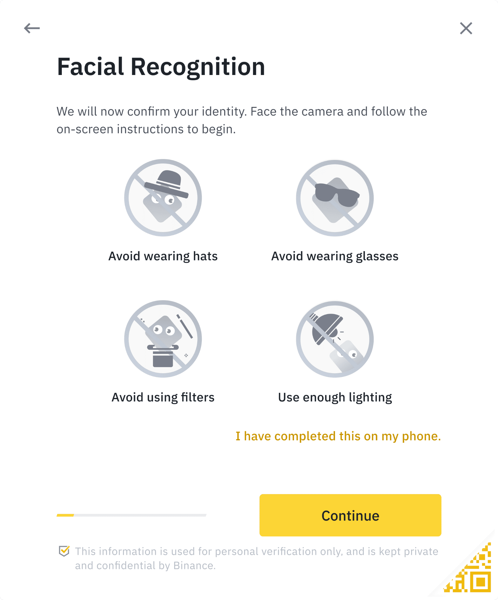 12. Кроме того, вы можете переместить указатель мыши на QR-код внизу справа, чтобы завершить проверку через приложение Binance. Отсканируйте QR-код с помощью приложения Binance, чтобы завершить процесс верификации.