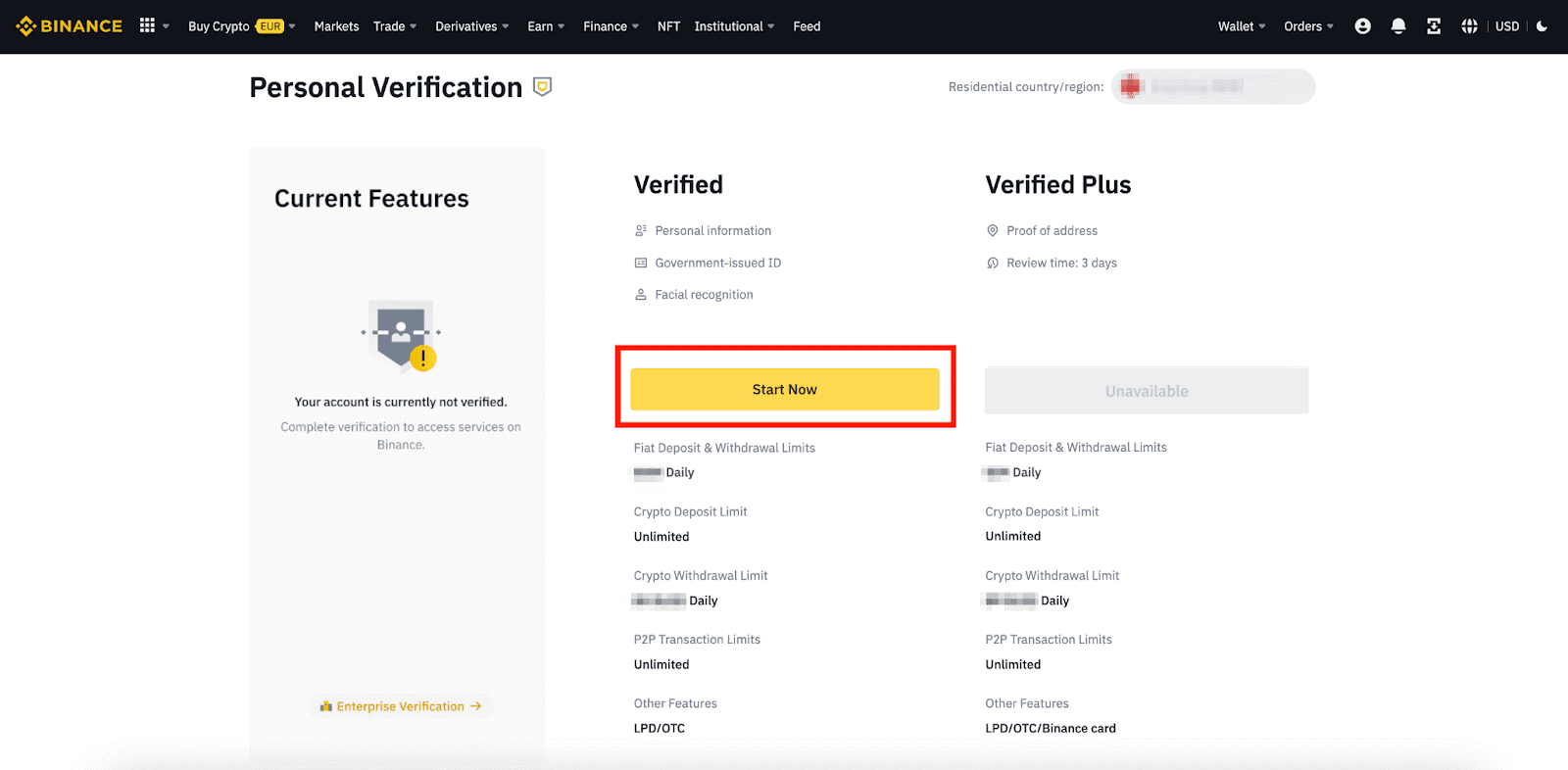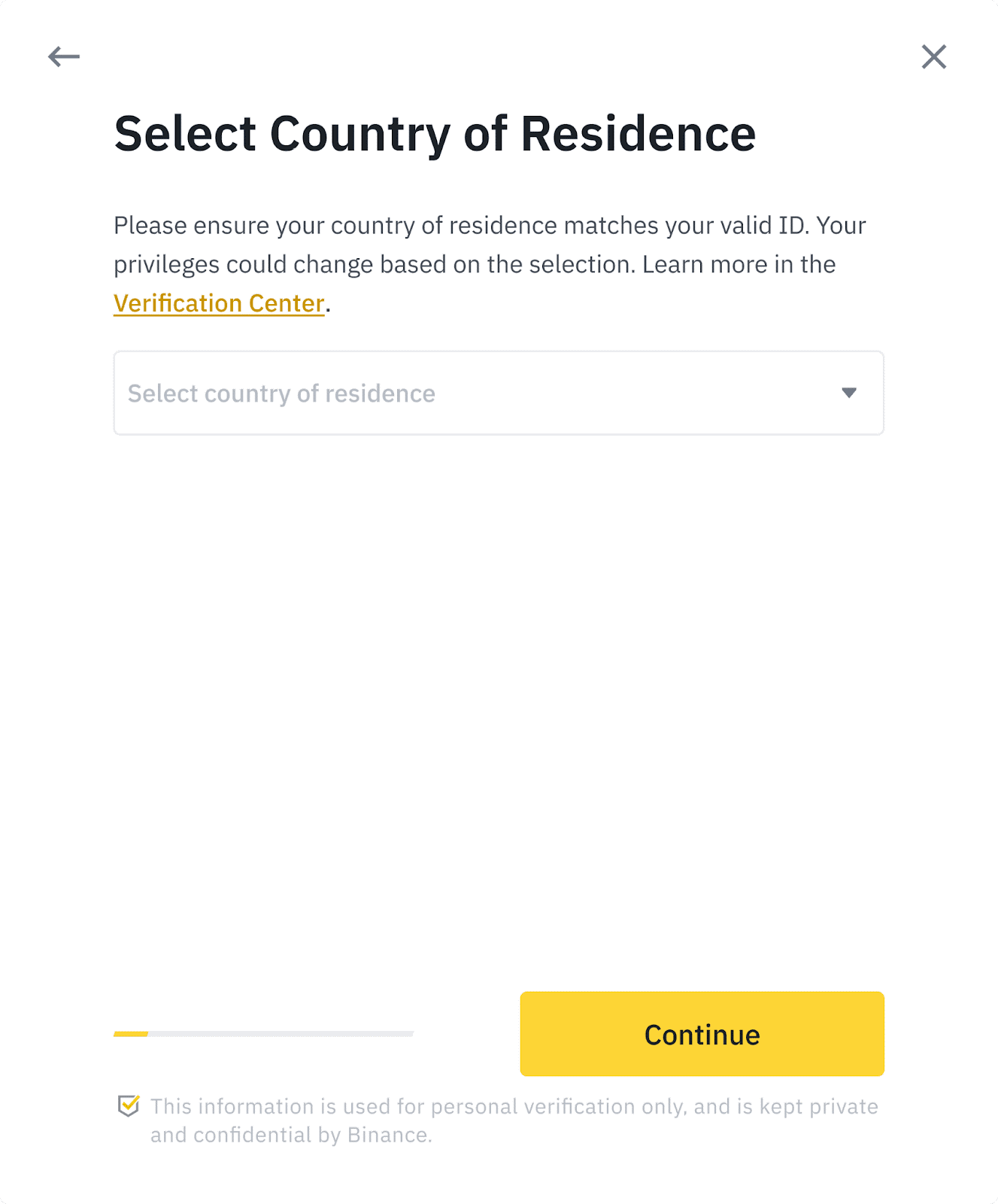 5. После этого вы увидите список требований к верификации для вашей страны/региона. Нажмите «Продолжить».