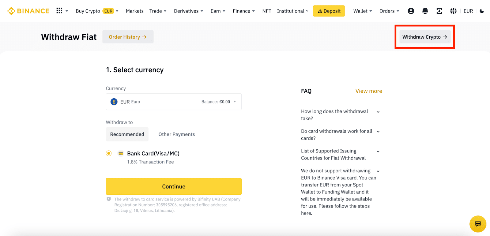 Вы будете перенаправлены на страницу вывода. Нажмите Вывод криптовалюты.