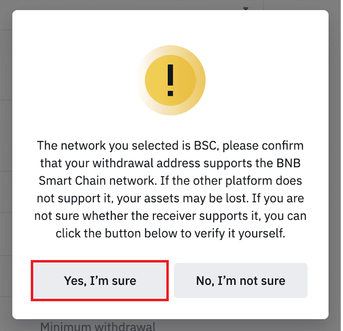 Вам будет предложено еще раз подтвердить, что платформа, на которую вы выводите средства, поддерживает выбранную сеть. Если это так, нажмите Подтвердить.